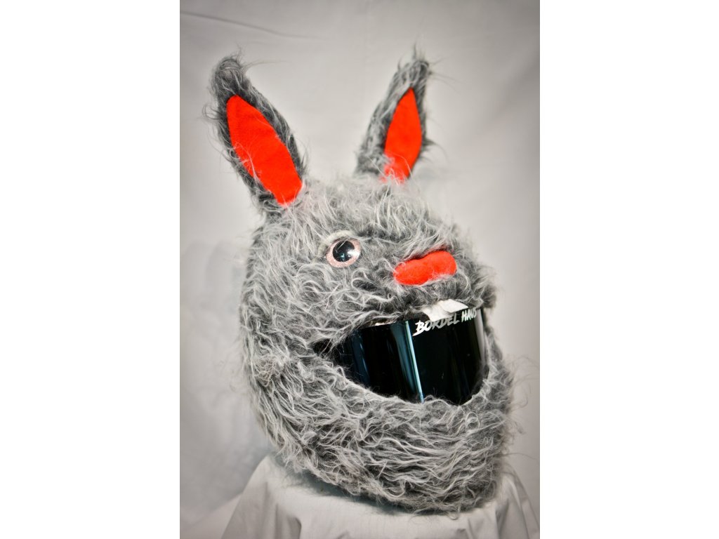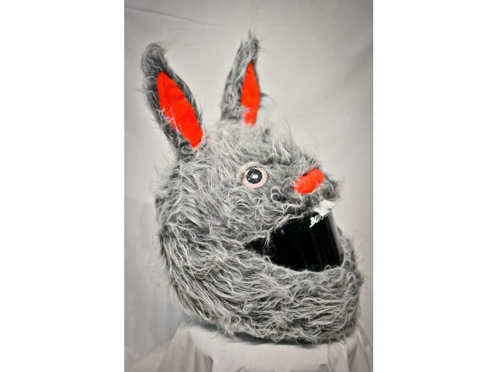 Zabudni na nudné prilby! 🐇 Premeň sa na šialeného zajaca s plyšovým návlekom na helmu Sivý Zajac. Tento chlpatý rebel s dlhými ušami, oranžovým nosom a obrovskými zubami ti zaručí maximálnu pozornosť na ceste aj na zraze.