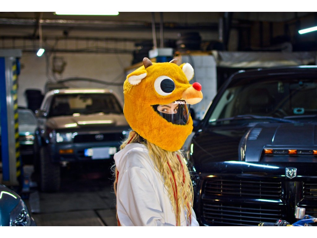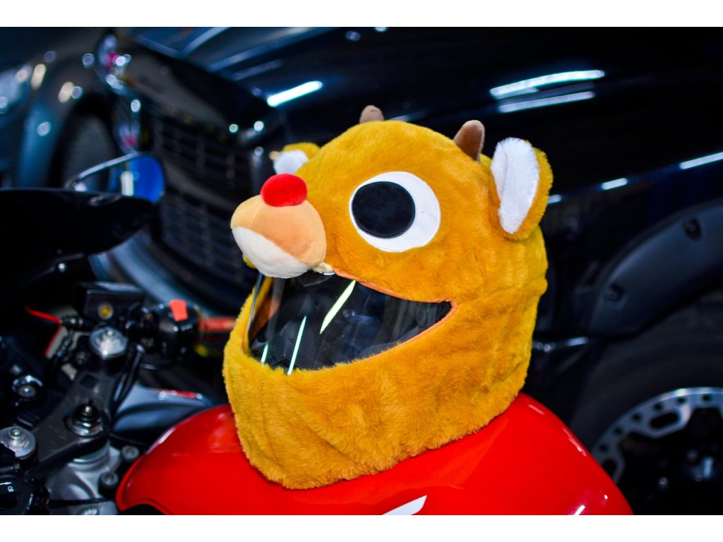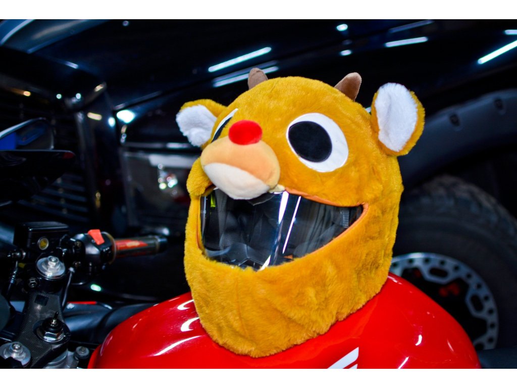 Srnka navlek na helmu – plysovy motorkarsky doplnok