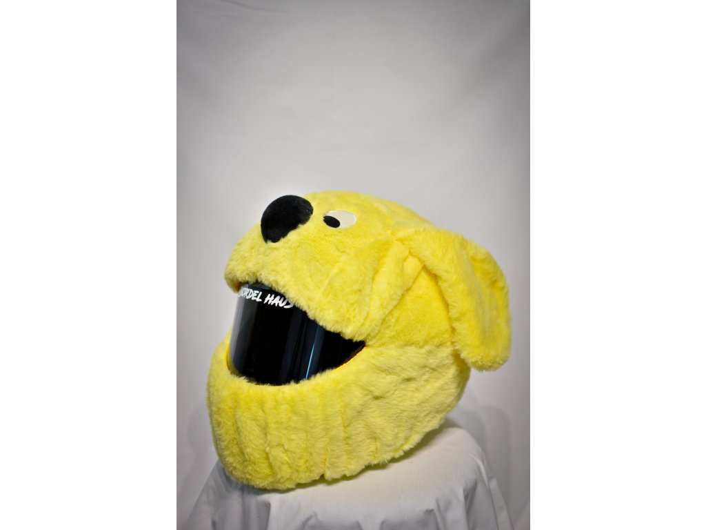 Zlty psik plysovy navlek na helmu